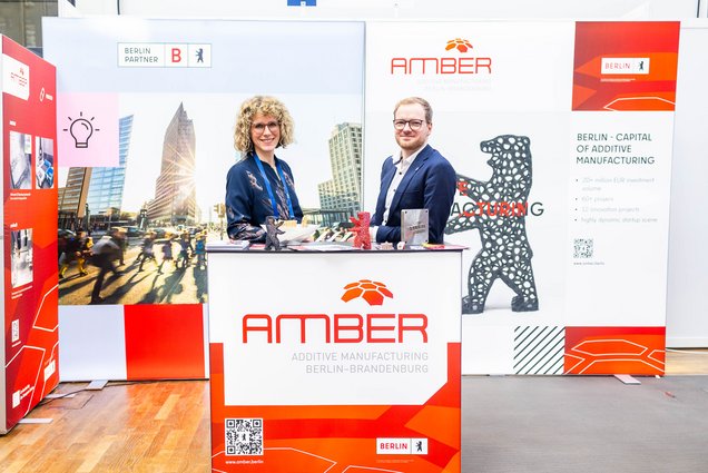 Als offizieller Partner präsentierte das AM-Cluster AMBER Ergebnisse aktueller F&E-Projekte aus der Hauptstadtregion – darunter AMSpace, AddGLEIS,MRI-3D-Printing und Xpert4AM.